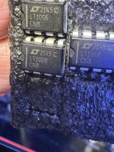 Most Adcom amplifiers don’t have a protection circuit in the schematics, so the results are standard. If something happens, speakers take a direct hit from the amp’s output section. This case is interesting because even after issues like that, all output transistors are still alive, meaning good-quality components were used. Found a bad driver transistor 2SA1210 on the input/driver board. We changed all input and driver transistors and plus 8 pin Opamp IC . Channel starts working, but DC OFFSET is more than 2 volts, and it is not good. Bias not in range also. All new parts we used were purchased online. Finally , after couple more hours of troubleshooting we found that the new IC LT1006 we purchased online is bad. Next time, we’d better use new old stock parts, we trust them more than new production.
